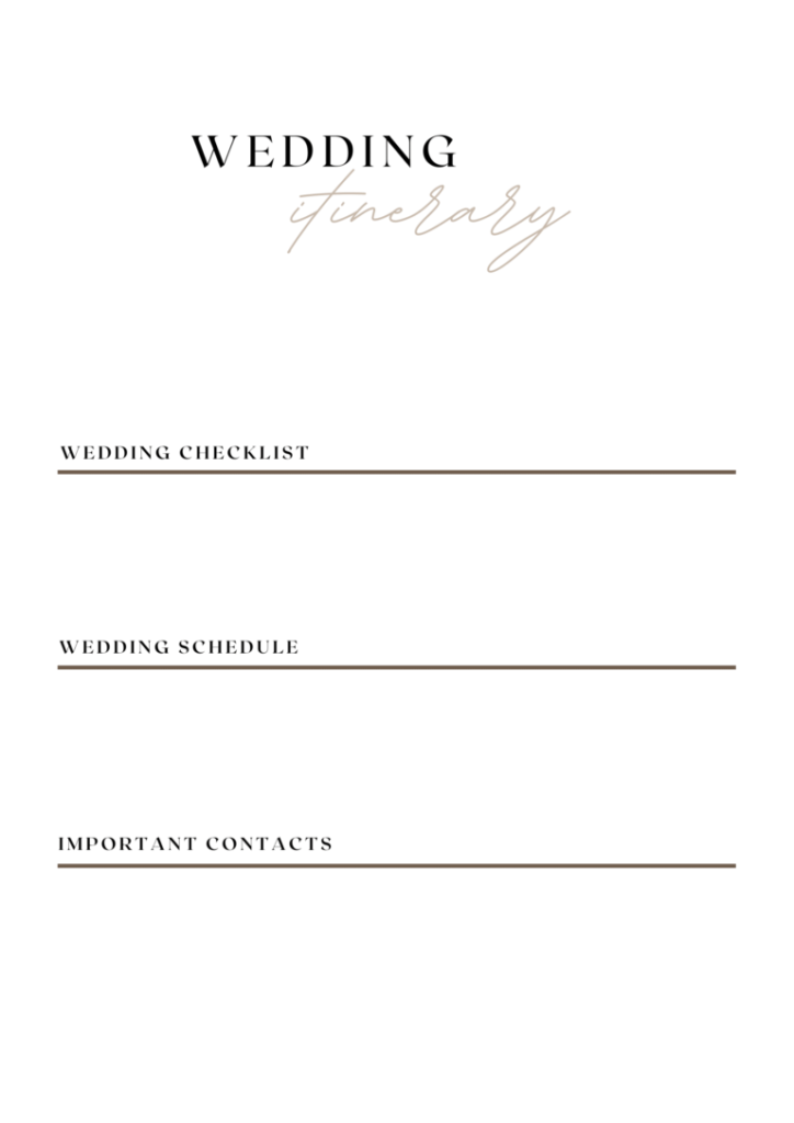 Our Wedding Planner Printable includes a comprehensive set of printable pages designed to help you manage your wedding budget, itinerary, and timeline. It covers essential aspects of wedding planning to ensure a smooth and organized process.
